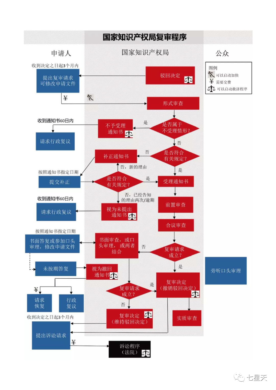 专利复审委员会收到请求人提交的复审请求书后,首先进行形式审查。 形式审查的主要内容包括:请求复审的客体、复审请求人的资格、复审请求的期限、文件形式、复审的费用、以及必要时的委托手续等。 如果复审请求不是针对国家知识产权局专利局作出的驳回决定提出的,或者提出复审请求的时间超出了法定的三个月期限,或者复审请求人不是被驳回的专利申请的申请人,则该复审请求将不予受理。